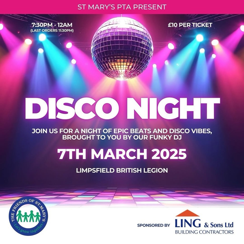 Get Ready for the PTA School Disco! 🎶 – Coming up in March, we’ll be going back to school with the St Mary’s PTA fundraiser – School Disco!